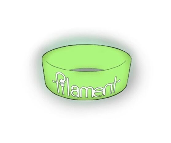 フィラメントのロゴが入った光るラバーバンド!蓄光なので暗い所で光ります!ライブで付けるのもヨシ!バッグに付けるもヨシ!